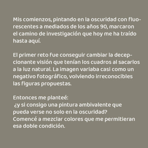 Entonces me planteé: ¿y si consigo una pintura ambivalente que pueda verse no solo en la oscuridad?