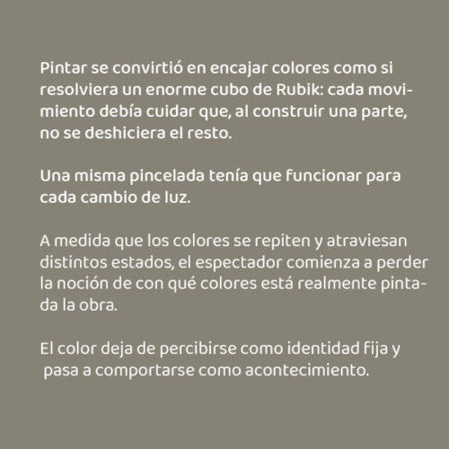 En este proceso se genera una cromatensión: una tensión interna del color que mantiene la imagen abierta mientras se construye.