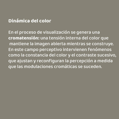 En este campo perceptivo intervienen fenómenos como la constancia del color y el contraste sucesivo, que ajustan y reconfiguran la percepción a medida que las modulaciones cromáticas se suceden.
