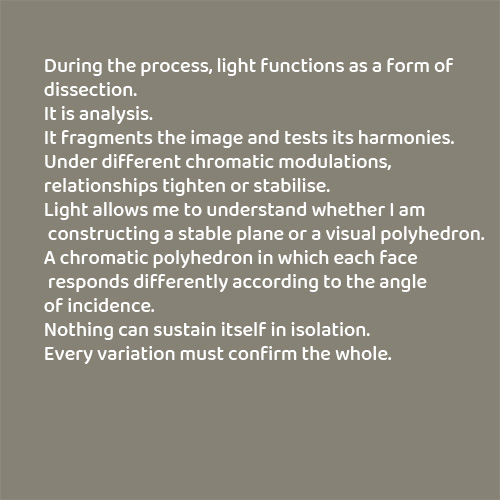 Light allows me to understand whether I am constructing a stable plane or a visual polyhedron.