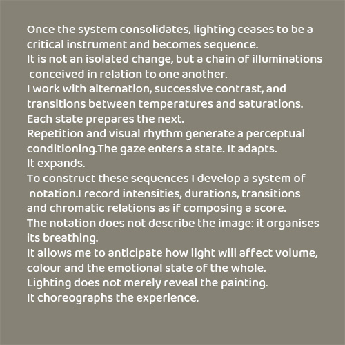 Once the system consolidates, lighting ceases to be a critical instrument and becomes sequence.